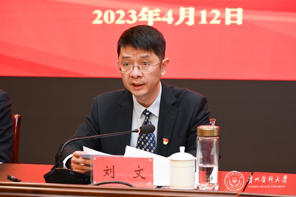 4月12日,学校2023年全面从严治党工作暨党风廉政警示教育会议在花溪校区道德讲堂召开。校领导刘文、罗俊、田晓滨、陈代勇、李海洋、沈祥春及校党委委员陈颖,天产室领导杨小生、孙超出席。学校(含天产室)党政群各部门副处级以上干部,各附属医院党政主要负责人、纪委书记,省纪委省监委派驻学校纪检监察组全体干部参加。会议由党委副书记刘文主持。