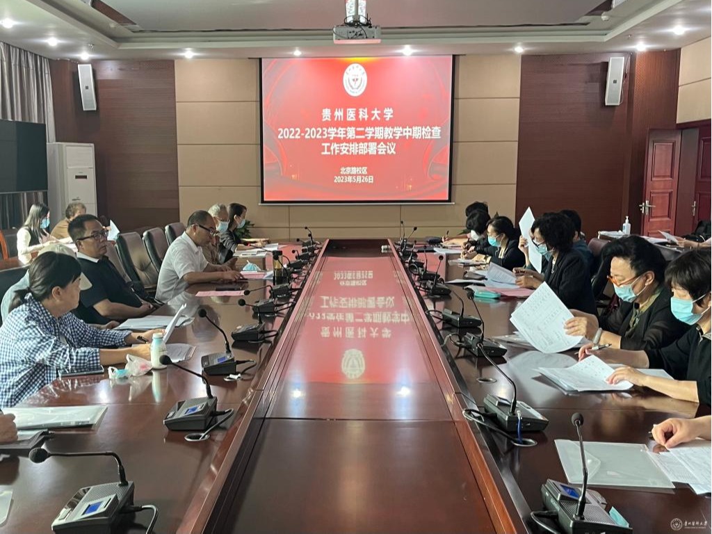 为全面学习贯彻党的二十大精神及习近平新时代中国特色社会主义思想,认真贯彻落实习近平总书记关于教育的重要论述和党的教育方针,坚持以本为本,推进四个回归,促进学校新医科、新工科、新文科建设,突出教育教学中心地位,全面加强学校内涵建设和双一流建设,进一步规范教育教学管理,保证良好的教育教学运行秩序,不断提升教育教学水平和人才培养质量,5月26日,beat365在南、北校区同步开展2022-2023学年第二学期本科教学中期检查工作。副校长曾柱、蒋红梅出席教学中期检查工作部署会。学校教学指导委员会委员、本科教学工作督导委员会委员及教学质量监控与评估办公室、教务处、教师工作处等教学职能处室领导及工作人员、各附属医院观摩人员参加本次教学中期检查工作。