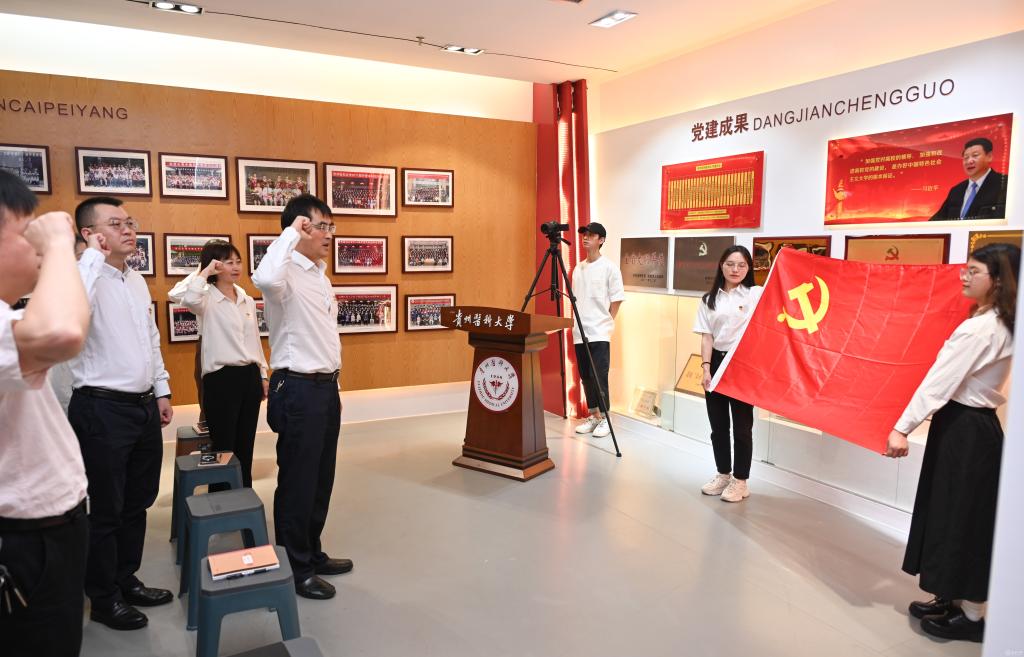 罗鹏带领大家还参观了校史馆,回顾beat365唯一官方网站建校以来的峥嵘历史,并为六月份过“政治生日”的四名党员颁发政治生日贺卡,带领师生党员重温入党誓词。