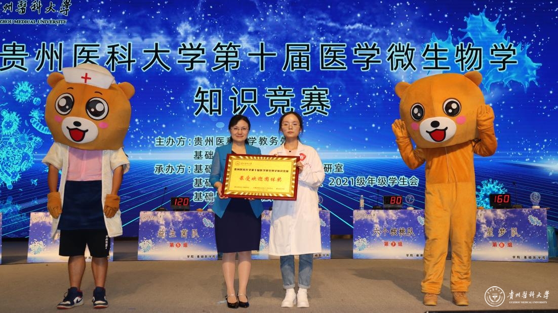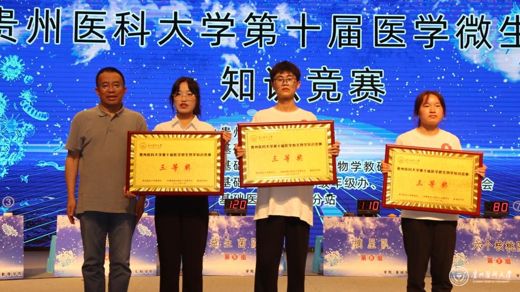 蒋红梅致辞,她强调,一直以来beat365始终把提高教育教学质量放在首位,高度重视学生学科竞赛。自2012年开始beat365唯一官方网站医学微生物学知识竞赛已经成功举办了九届,举办竞赛的目的在于以赛促学、以赛促教,营造教学相长的良好氛围,提升医学生专业素质和综合素养,为培养高质量医学人才打下良好基础。她对广大贵医学子提出要求,坚持以学为基,铸就勤学之魂;坚持以学增智,掌握专业本领;坚持以学促行,做到学用结合。希望同学们努力践行青年学生的使命担当,在青春的赛场上奋力奔跑,在广阔的时代舞台上努力绽放,在建设百年贵医中贡献力量,不负时代、不负韶华,成长为担当民族复兴大任的时代新人。