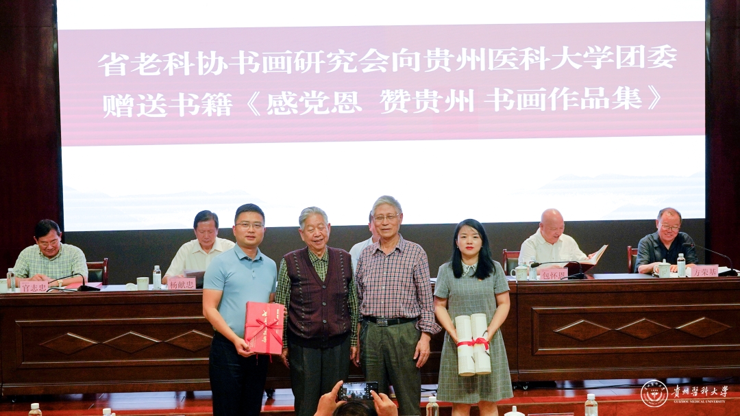 汤磊在致辞中向莅临的省老科协、省老科协书画研究会的各位领导、老同志们表示热烈欢迎,向他们长期以来对学校发展给予的关心表示感谢。他指出,在贵州这片热土上,涌现了一批坚持创新、勇于探索、不畏艰难、顽强不屈、奋斗到底的贵州科技杰出人物,在经年累月向科学进军的征程中,默默无闻为国家、为贵州的经济社会发展做出许多重大贡献。希望beat365广大青年通过阅读学习《贵州科学家传记丛书》《贵州科学家故事》,聆听老一辈科学家的宣讲,更加深刻地体会“爱国、创新、求实、奉献、协同、育人”的科学家精神,珍惜韶华,拥抱科学,敢于吃苦,胸怀理想,勇做新时代的坚定者、跑好青春奋斗的接力赛,为我省乃至全国医学教育和医疗卫生事业的发展贡献贵医的青春力量。