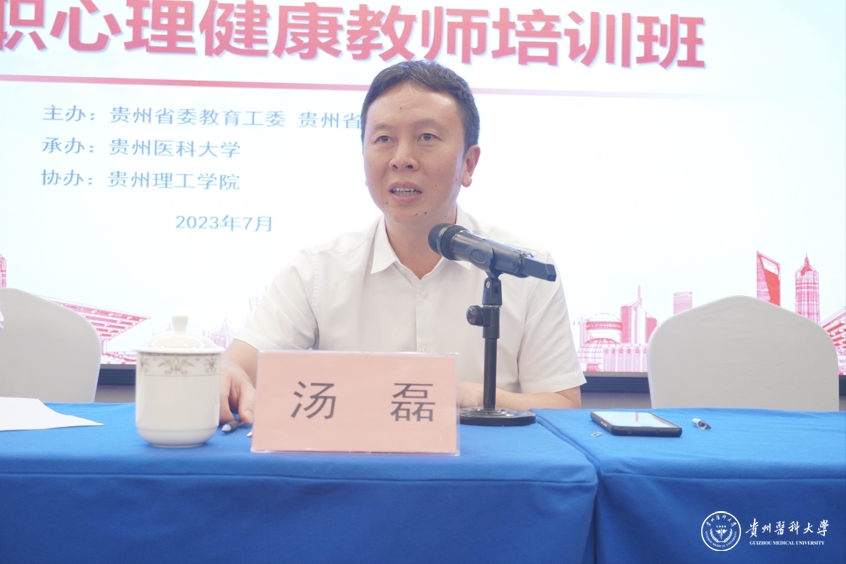 7月14日,2023年贵州省高校专职心理健康教师培训班结业典礼在培训会场华茂大酒店举行,校党委副书记汤磊出席并讲话。