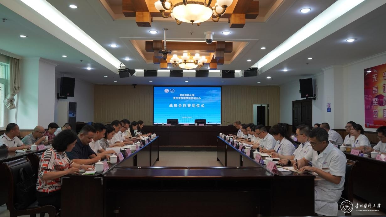 罗鹏和杨光红代表双方签署协议。与会人员围绕共建高水平公共卫生学院和博士后联合培养基地、人员互动交流机制、创新科研合作和校地合作等内容进行交流。