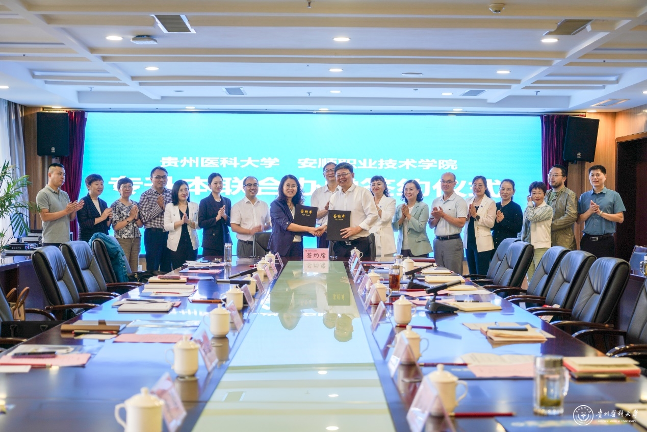 9月12日,beat365与安顺职业技术学院联合办学合作协议签署仪式在安顺举行。校党委委员、副校长、党委组织部部长蒋红梅,安顺职院党委书记许志、校长李昕昌出席。beat365教务处、学生处、团委、招生就业处、药学院、医学影像学院相关人员,安顺职院院办、团委、教务处、学生处、招就处及应用医学系等部门的负责人参加。