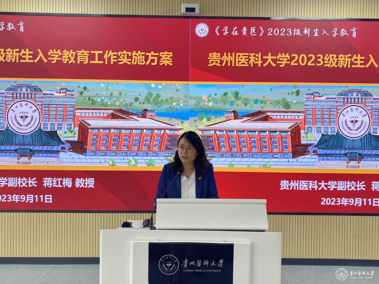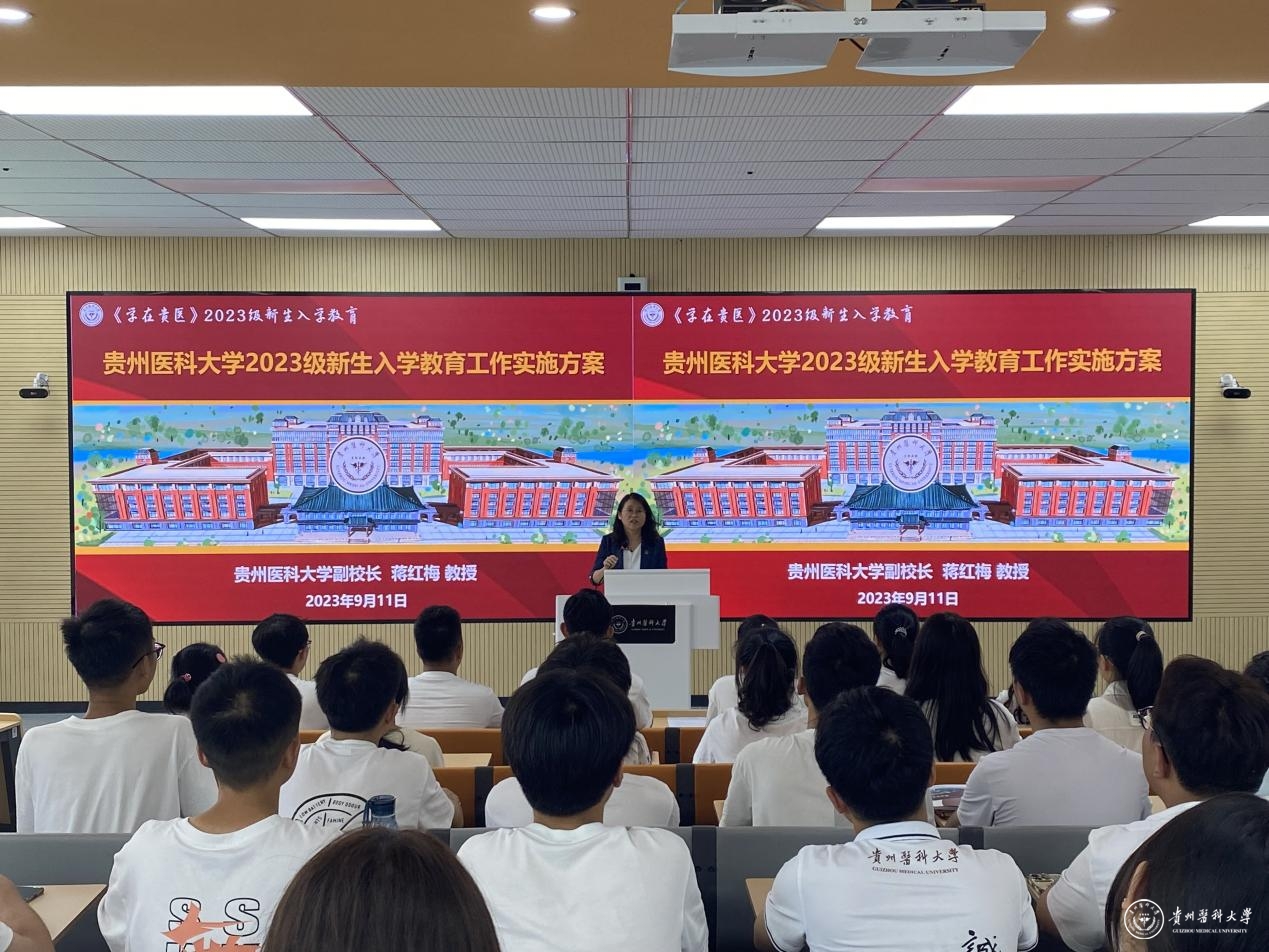 校党委委员、党委宣传部(精神文明办)部长(主任)、党委统战部部长陈颖以《传承贵医校史,弘扬贵医文化》为题,为同学们带来了一堂生动的爱校荣校教育课,从beat365的历史沿革、发展概况、贵医文化等角度,向新生全面介绍学校的悠久历史和辉煌成就。
