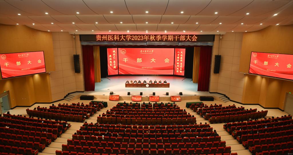 10月12日下午,学校2023年秋季学期干部大会在云漫湖校区刚刚落成的大礼堂召开。党委副书记、校长罗鹏总结回顾上学期工作推进落实情况,并安排部署本学期工作。校领导刘文、汤磊、曾柱、蒋红梅、沈祥春以及附属医院领导左石、天产中心领导孙超出席。天产中心、附属医院、第二、第三附属医院、附属口腔医院、大学城医院副处级以上干部,附属肿瘤医院、白云医院、乌当医院党政主要负责人,省纪委省监委派驻beat365唯一官方网站纪检监察组全体成员以及学校各民主党派基层主要负责人、副科级以上干部(含教研室负责人)参加。