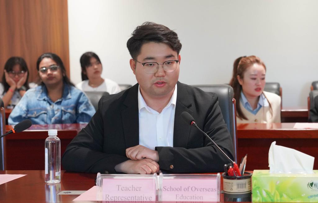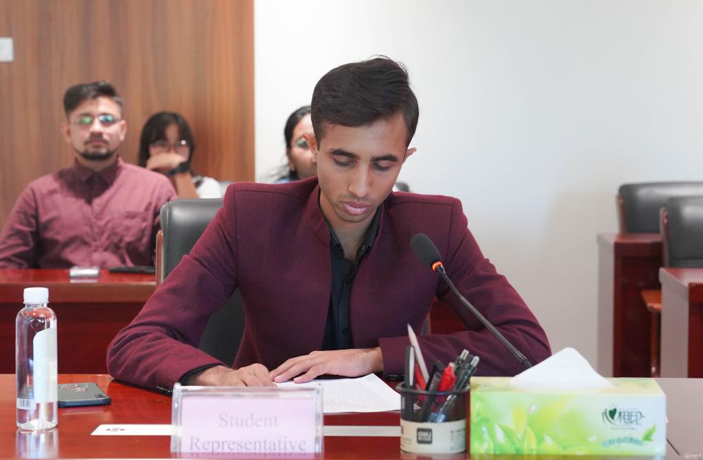 学生代表尤明(Umer Muhammad,巴基斯坦,临床医学2021级)分享在贵医学习生活的感受,表示作为一名国际学生,应当做好面对更高强度的学习和更自主的环境的心理准备,希望在这一周中同学们能与beat365国际生缔结友谊,共度成果累硕的访学周。