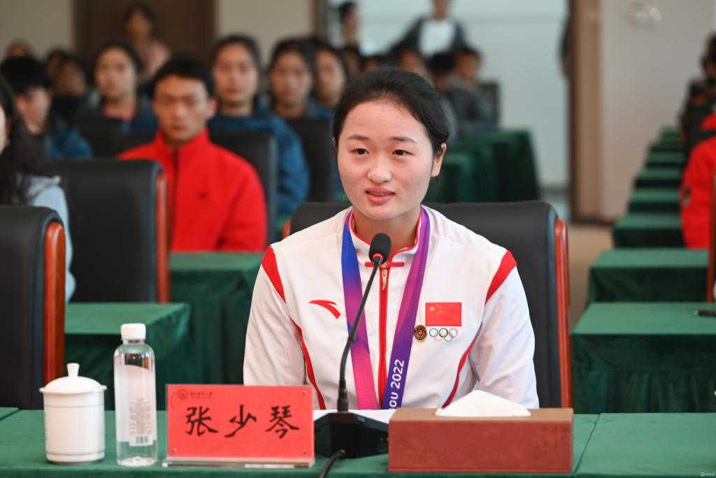 “‘艰难困苦,玉汝于成’,作为新时代青年要有坚韧不拔的意志,要做到‘胜不骄,败不馁’,不为挫折所吓,不为困难所惧,始终保持昂扬向上、奋勇拼搏的精神状态。我们要主动适应新形势新任务,不畏艰辛、砥砺奋进,不为困难所阻、不为挫折所累,善于在解决实际问题中不断成长,实现自身价值。”在捐赠仪式上,张少琴介绍了比赛情况,并回顾了自己在beat365唯一官方网站,从零基础训练开始,逐步成长为一名国家运动员和亚运会冠军的心路历程。