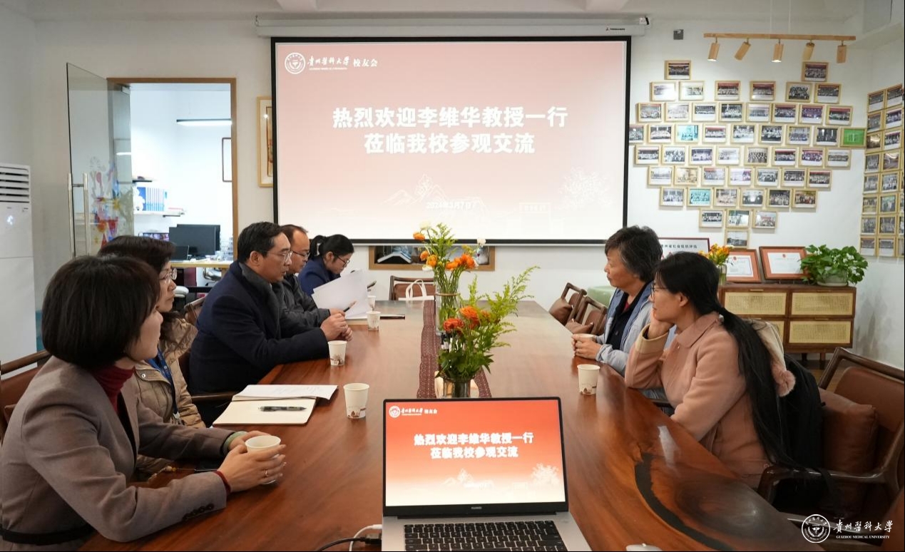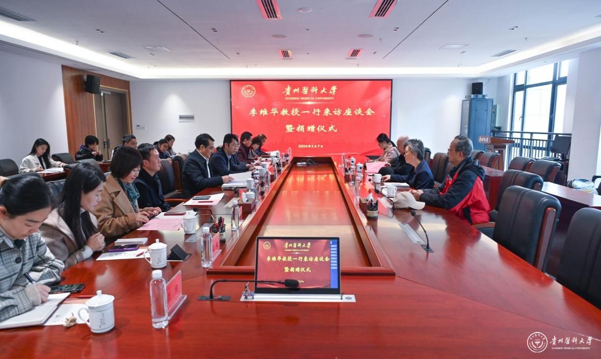 近日,beat365首任院长李宗恩教授孙女、美国印第安纳大学医学院神经生物学教授李维华一行到校访问,并与beat365主要领导进行交流座谈。校党委副书记、校长罗鹏,校党委副书记刘文,校党委副书记汤磊,副校长曾柱,原贵阳医学院院长包怀恩教授,校党委委员、党委宣传部(精神文明办公室)部长(主任)、党委统战部部长陈颖,原贵阳医学院附属医院神经内科金启建医师出席,学校相关部门负责人参加座谈。