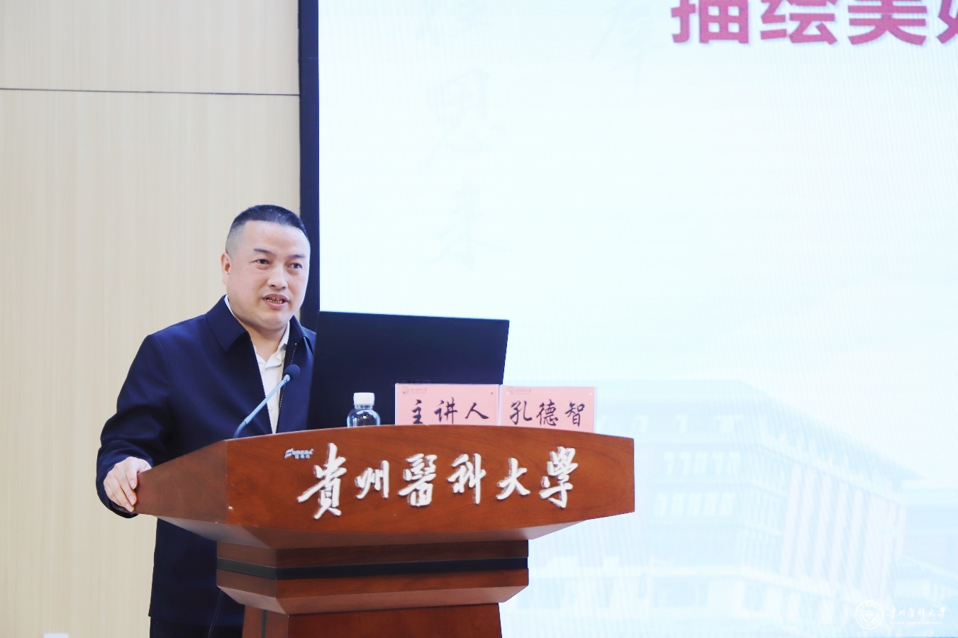 孔德智以生动的语言和真挚的情感回顾了自己从贵医毕业后在基层医院二十余年的成长经历,围绕基层就业形势和政策、基层医疗机构的发展现状、择业基层的优势等方面,对青年学生个人成长、就业创业、创新创造等方面提供宝贵意见。他结合实际工作中所见所闻所思,鼓励大家向下扎根积蓄力量、向上生长勇往直前,到基层去、到祖国最需要的地方去,为祖国医药卫生事业的发展贡献青春力量。