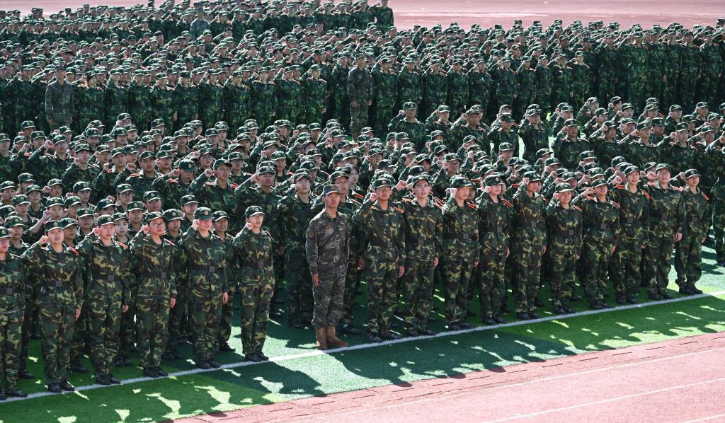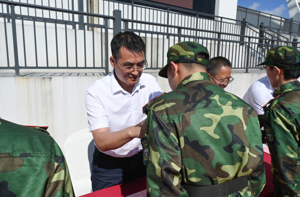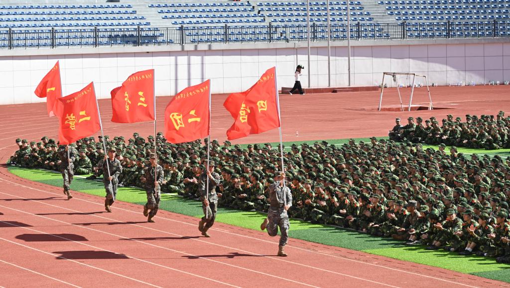 军训动员大会中,校领导向军训师授旗,汤磊教授作为军训师政委接旗。参训学生代表2024级口腔医学专业本科生赵奕琦发言。军训教官代表王雨轩作执训发言。
