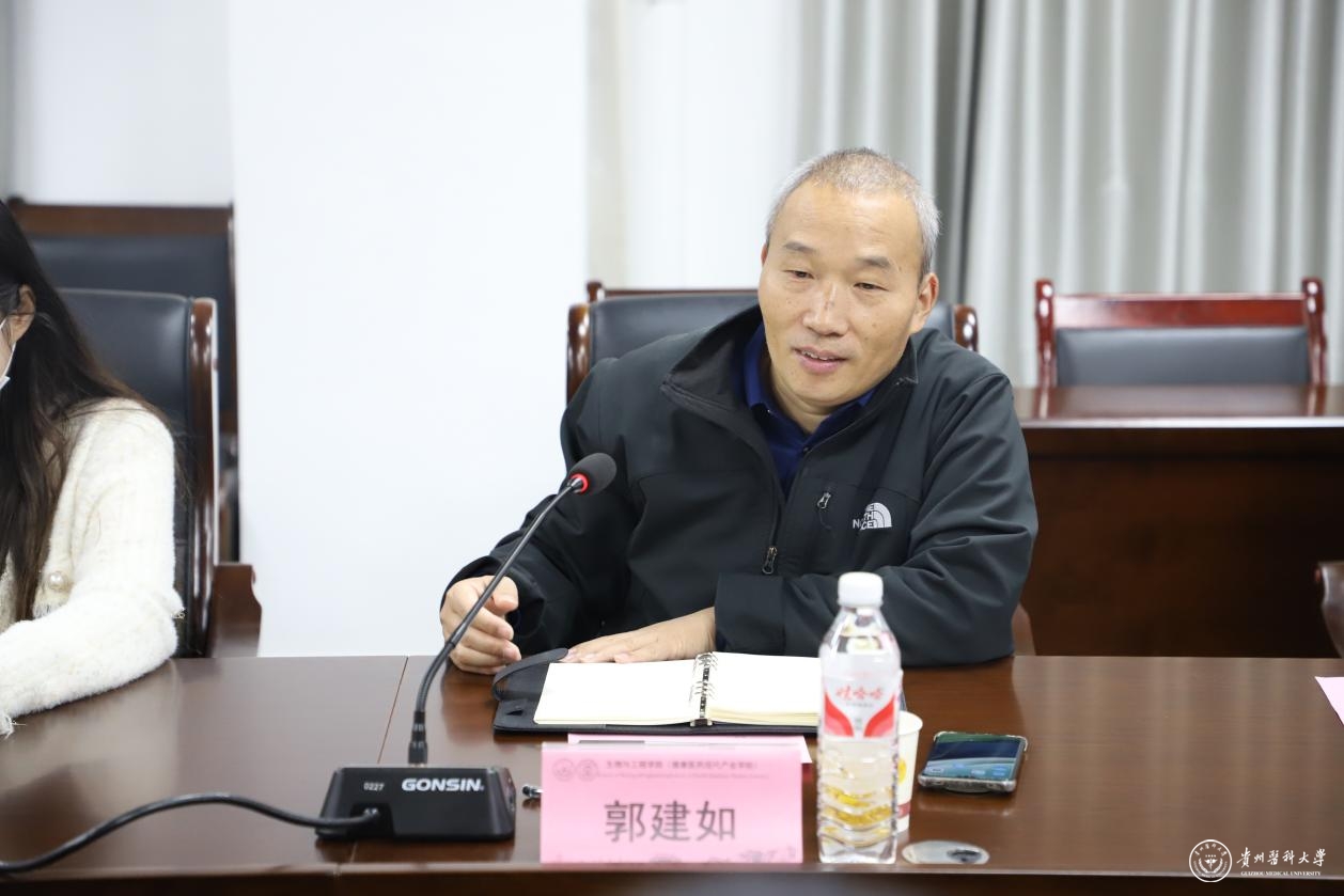 郭建如强调,此次调研目的是通过对首批教育部50家现代产业学院走访,总结建设经验,推广好的模式,了解建设中存在的一些共性问题,为高质量推进现代产业学院建设提供参考和借鉴。郭建如就如何围绕“健康”和“医药”进行专业交叉和融合办学,聚焦服务贵州省优势产业,办出健康医药产业学院的特色提出建议。