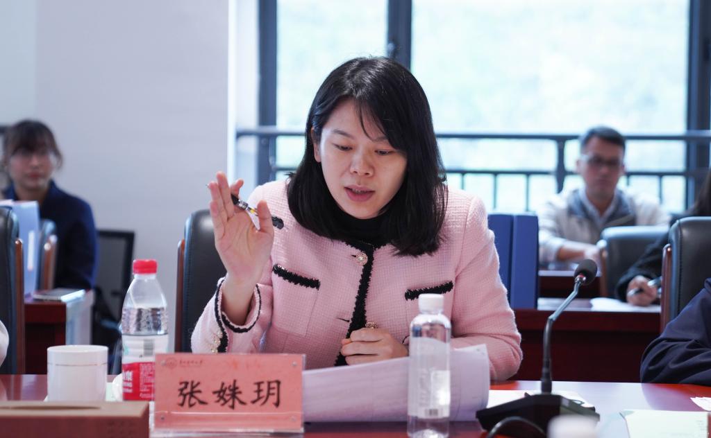 医学人文学院副院长彭丹围绕学位授权点的目标方向、师资队伍、人才培养、科学研究、学术交流、质量保障、服务贡献等方面向专家组进行汇报。