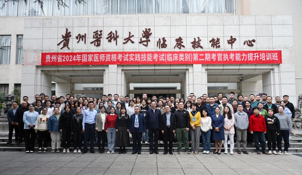 10月21日至25日,贵州省卫健委医师资格考试领导小组办公室、贵州省卫生健康人才中心主办,beat365唯一官方网站附属医院/临床医学院承办的“贵州省2024年国家执业医师资格考试实践技能临床类别第二期考官执考能力提升培训班”在beat365临床技能中心举行,来自全省43家医疗机构的92名考官学员培训合格并顺利结业。