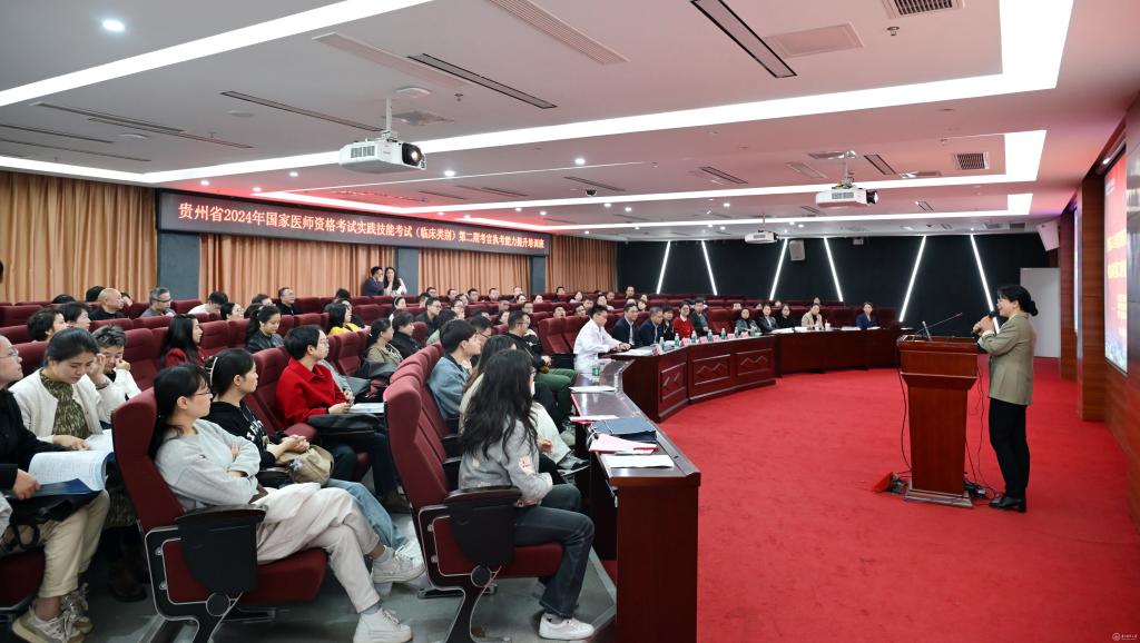 李海洋指出,附院医院、临床医学院党委行政高度重视此次培训,各项准备工作到位,以点带面辐射至各医院,各位学员都是各医疗单位的优秀骨干,希望通过此次培训,在今后的临床教学工作中树立好标杆作用,为本单位教学医疗发展贡献力量;同时,执业医师资格考试实践技能考试是行业准入考试,是评价申请医师资格者是否具备从事医师工作所必需的技能考试,希望通过此次培训,在今后的国家执业医师资格考试实践技能考试中,以高度的责任担当、严谨规范的执考,为贵州省国家医师考试实践技能临床教学和规范执考作出新的、更大的贡献。