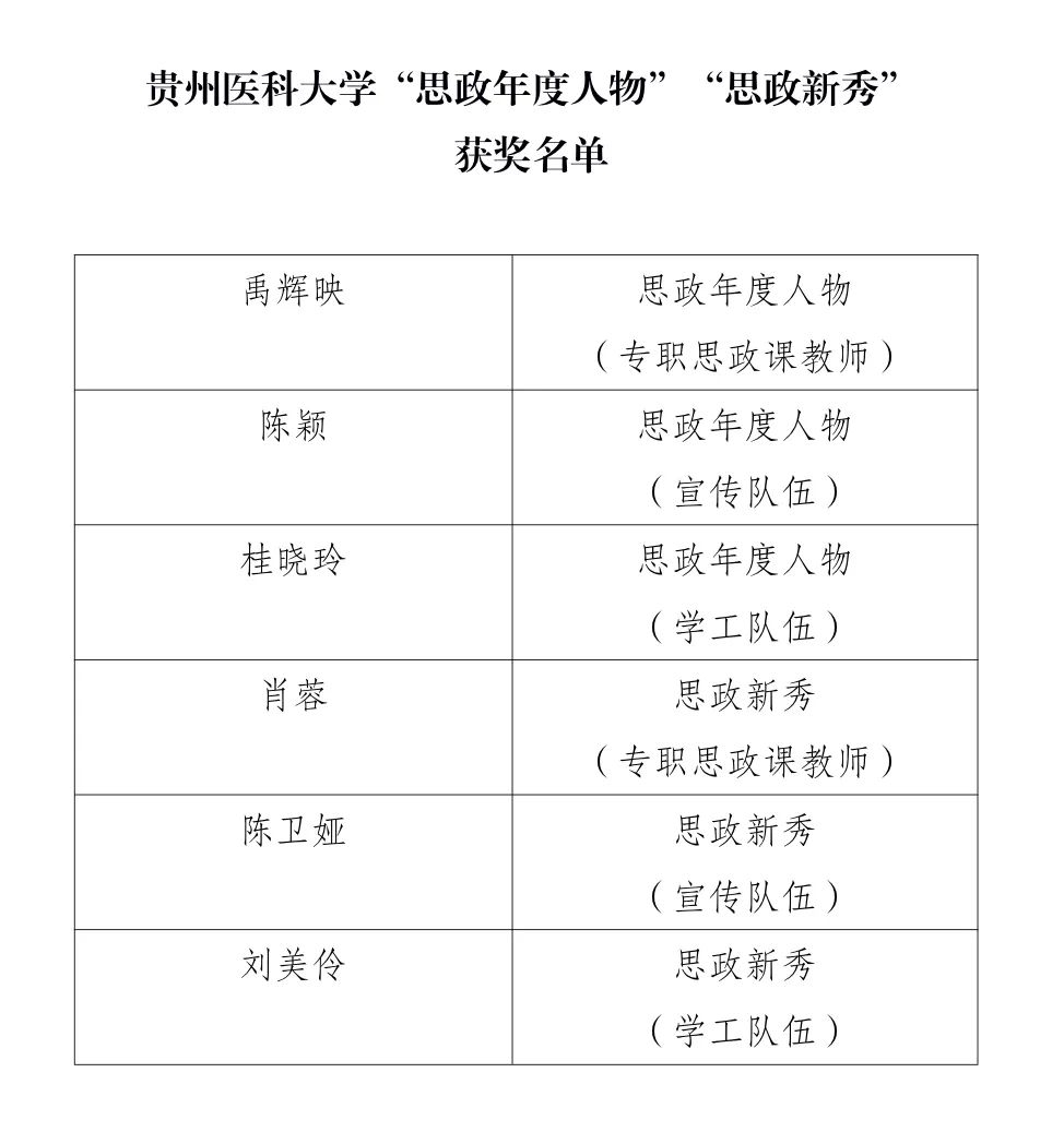 近日,省教育厅组织开展了2024年“思政年度人物”“思政年度人物提名”“思政新秀”评选工作。经过学校推荐、专家评审及结果公示,beat365共6位老师获表彰,获奖名单如下: