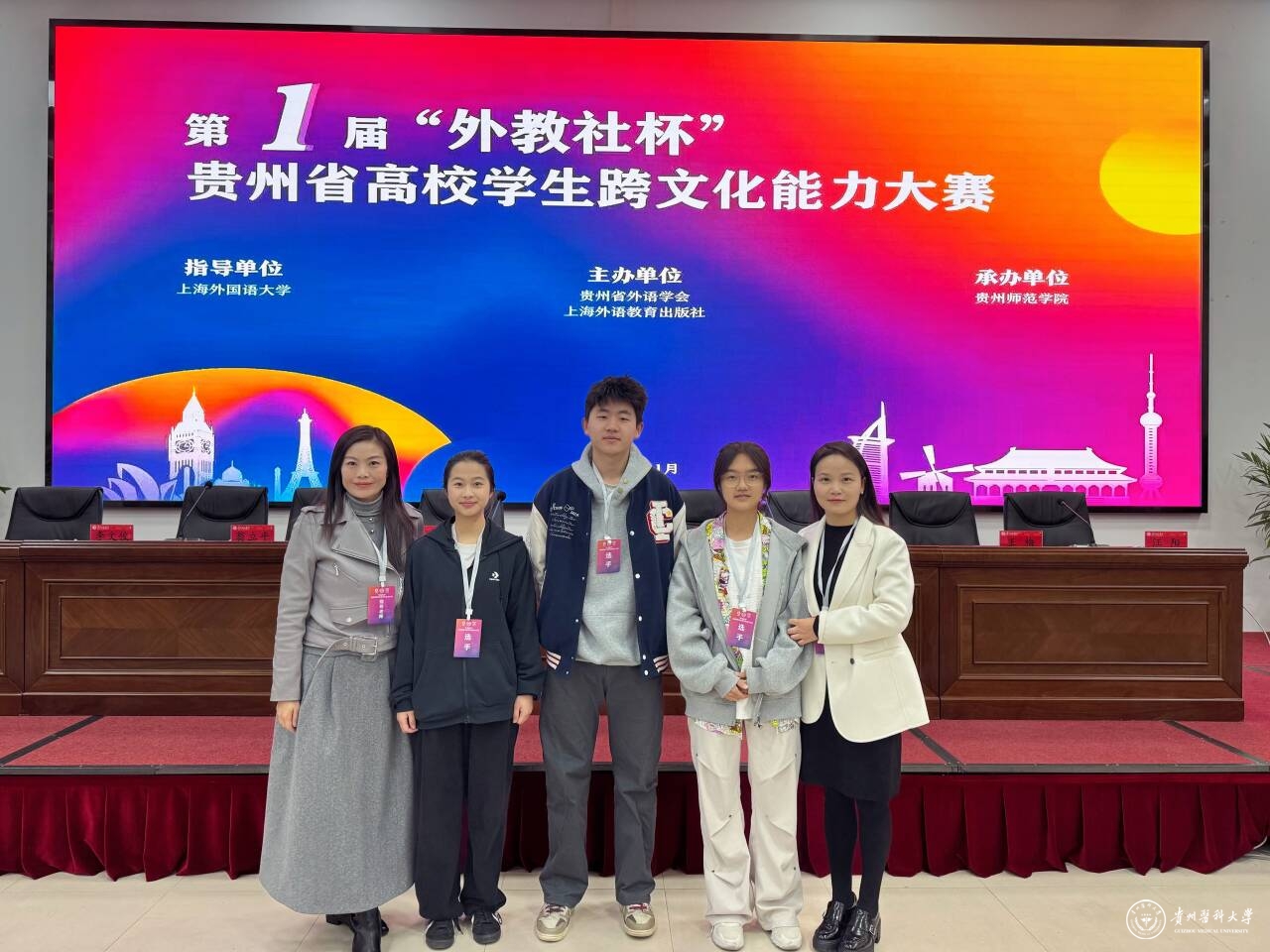 beat365由外国语学院李雨徽、杨发莉、余兰3位老师带队指导,2022级“协和班”邹翼、2024级“协和班”黄金秋、2023级英语专业费家蕾3位同学凭借出色的表现荣获贵州省一等奖,充分展现了beat365唯一官方网站学子的卓越风采和跨文化沟通能力。
