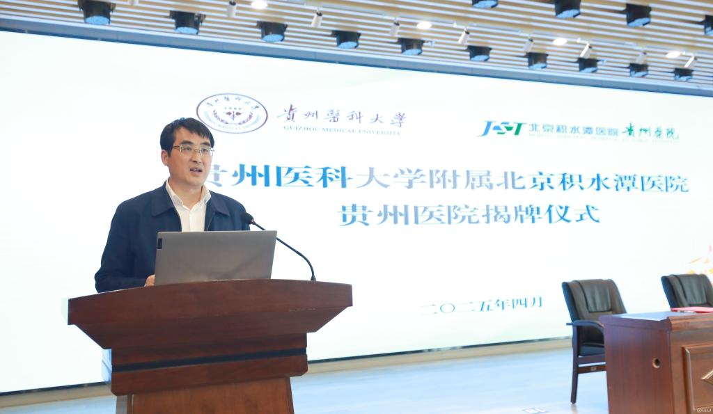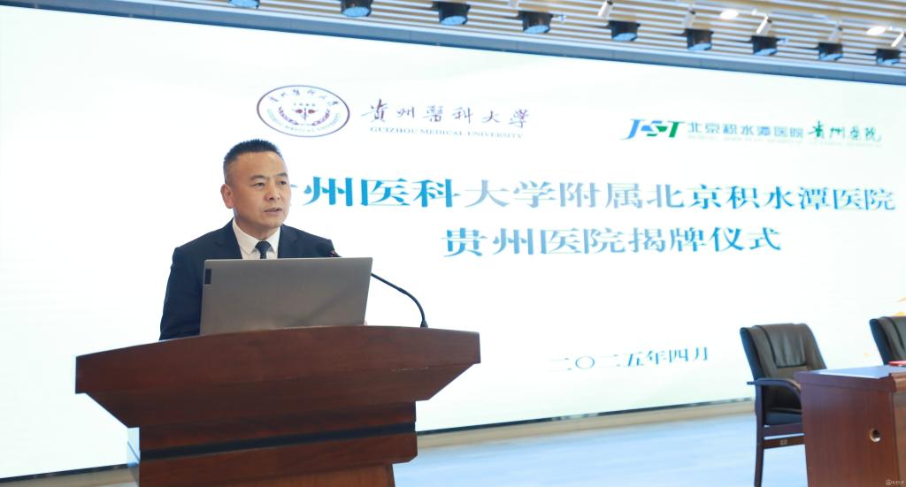 刘勇代表积水潭医院贵州医院致辞。他表示,医院将以此次签约揭牌为起点,与beat365唯一官方网站并肩同行,借助学校的优势资源,聚焦医教协同机制,在人才培养体系构建、教学基地标准化建设和科研项目申报等领域深化合作,共同肩负医学人才培养的时代重任,为实现医院高质量发展而不懈努力。