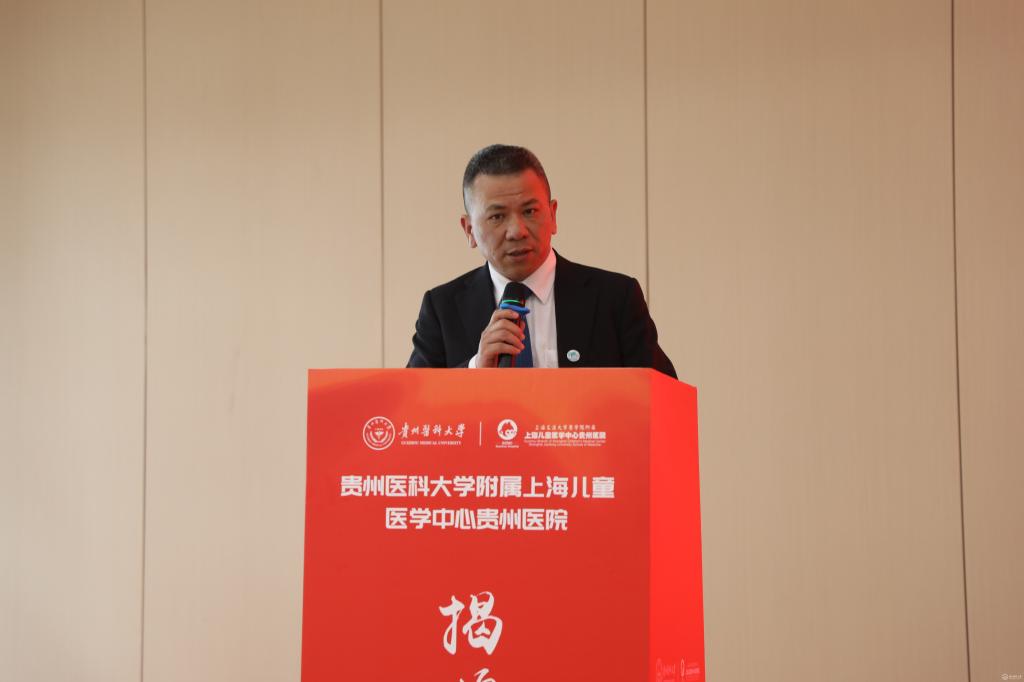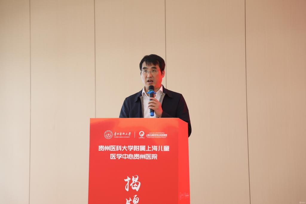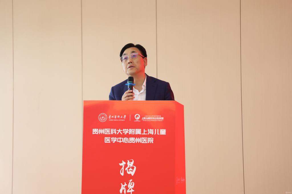 会上,安仕海代表省卫生健康委对beat365唯一官方网站附属上海儿童医学中心贵州医院揭牌表示热烈祝贺。他指出,此次揭牌不仅为医院未来的发展搭建了更广阔的平台,也为学校培养出更多适应社会需求、具有创新精神和实践能力的高素质医学人才提供了优质的临床教学和实践机会。希望充分发挥双方优势,共同推动儿科医学教育、科研和临床实践协同发展,努力打造西南地区儿科医学高地,为贵州人民提供更加优质高效便捷的医疗服务。