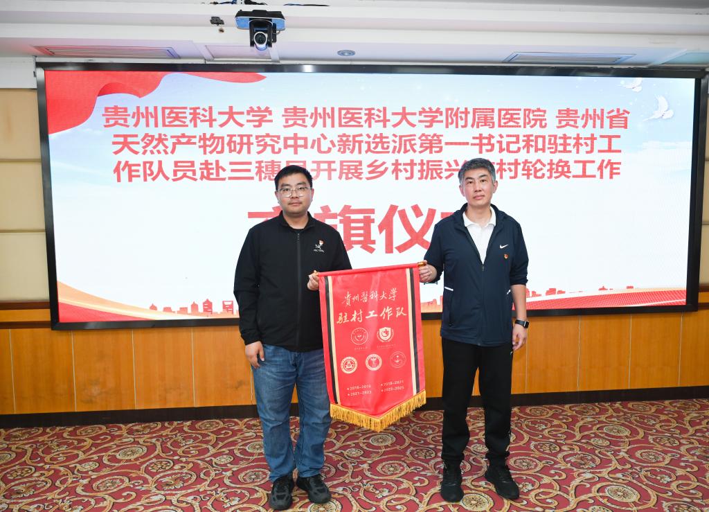 5月30日,校党委副书记、校长、贵州省天然产物研究中心党委委员、主任罗鹏带领新选派干部前往黔东南州三穗县,与当地政府共同举行了工作交接座谈会。校党委委员、附属医院党委书记李海洋,校党委委员、副校长、党委组织部部长齐晓岚,贵州省天然产物研究中心党委委员、副主任孙黔云,三穗县委常委、县委组织部部长、县委党校校长唐崟出席,新老驻村工作队队员及有关部门同志参加。