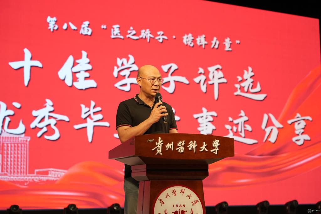 于浩致辞。他指出,“医之骄子·榜样力量”十佳学子评选是beat365朋辈榜样育人的重要载体,持续激励着一代代贵医学子奋勇向前,在追求卓越的道路上笃行不怠。他勉励全体同学以榜样为灯,在贵医这片育人沃土上汲养拔节,茁壮成长。