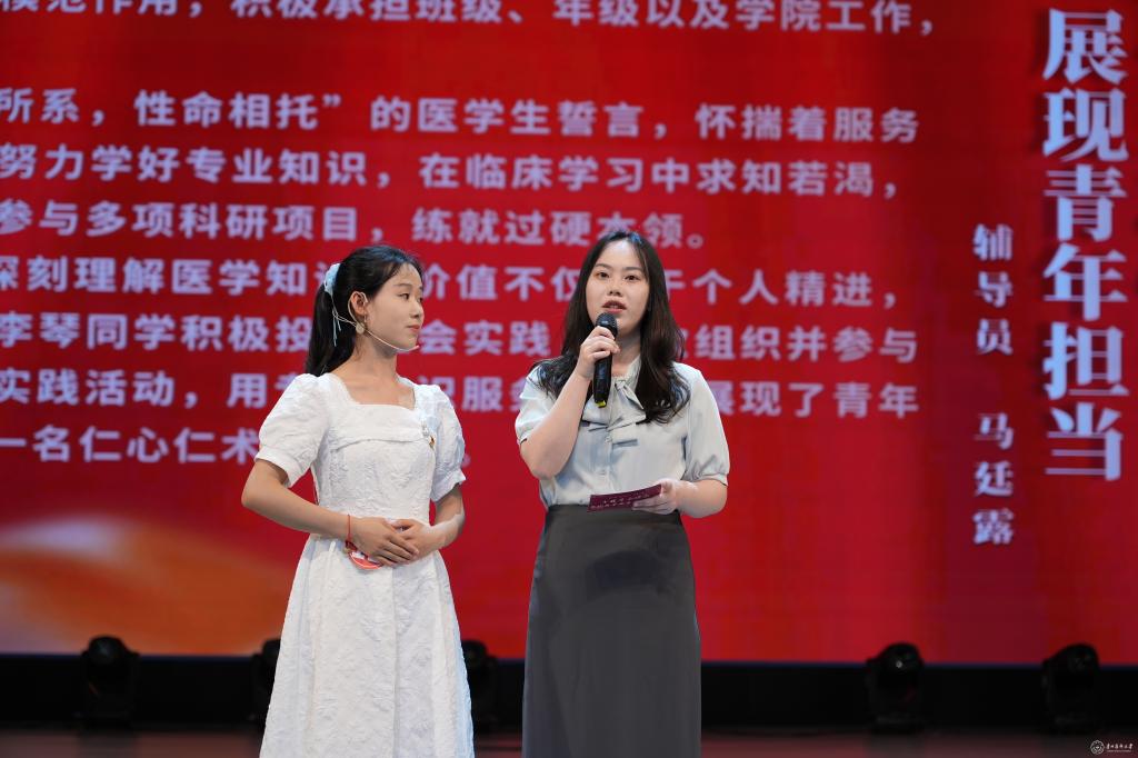 来自全校各学院的16位本科候选人、4位研究生候选人先后登场,集中展现新时代贵医学子践行“有理想、敢担当、能吃苦、肯奋斗”的青春风采。活动通过“自我展示+访谈互动”的方式立体呈现,他们中既有博学笃行锐意进取的求知身影,驰骋赛场问鼎桂冠的矫健身姿;也有深耕实验室创新攻坚的学术突破,赋能乡村产业振兴的实干案例;更不乏思想引领服务师生的青春力量,投身公益践行使命担当的青春足迹。鲜活案例与创新成果交相辉映,生动诠释了贵医学子“仁心仁术,济世报国”的医学使命与时代担当。