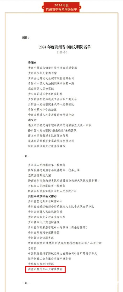 为表彰先进、树立榜样,激励广大妇女自尊自信、自立自强,奋进新征程、建功新时代,省妇联、省人力资源社会保障厅决定,授予60人贵州省三八红旗手称号,授予40个单位贵州省三八红旗集体称号,授予100个单位贵州省巾帼文明岗称号。其中:共青团beat365唯一官方网站委员会荣获“贵州省巾帼文明岗”称号。