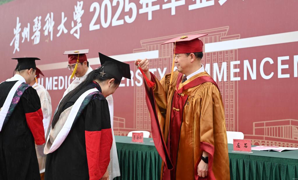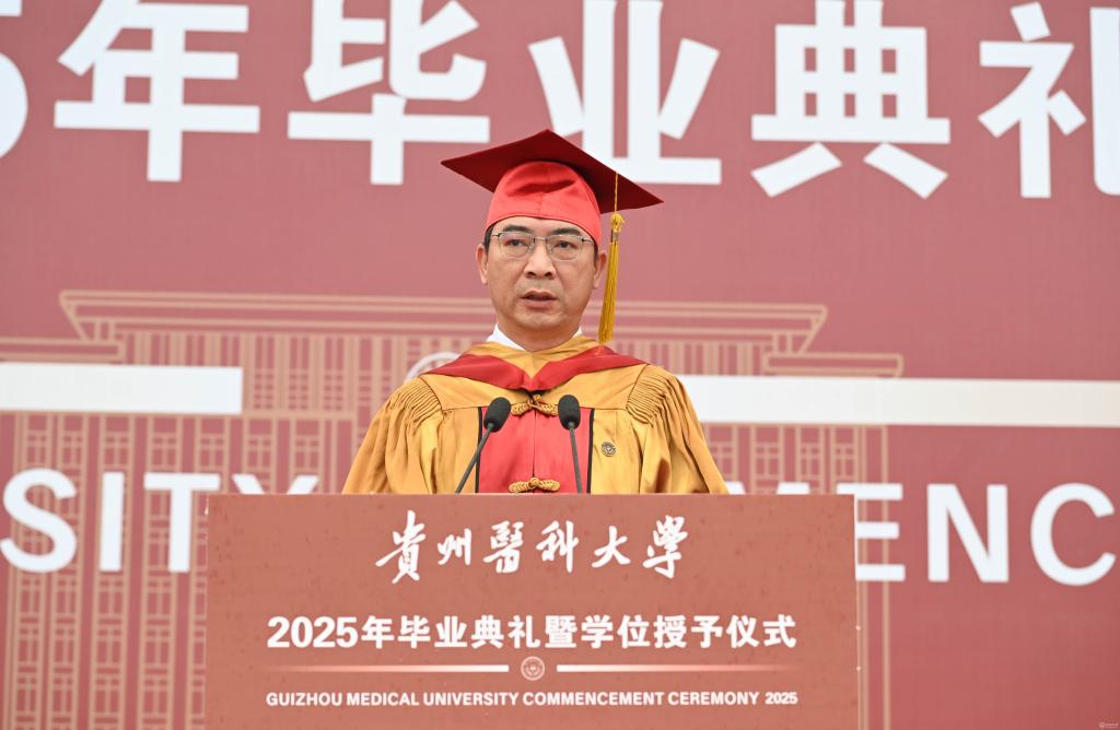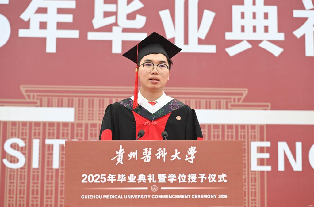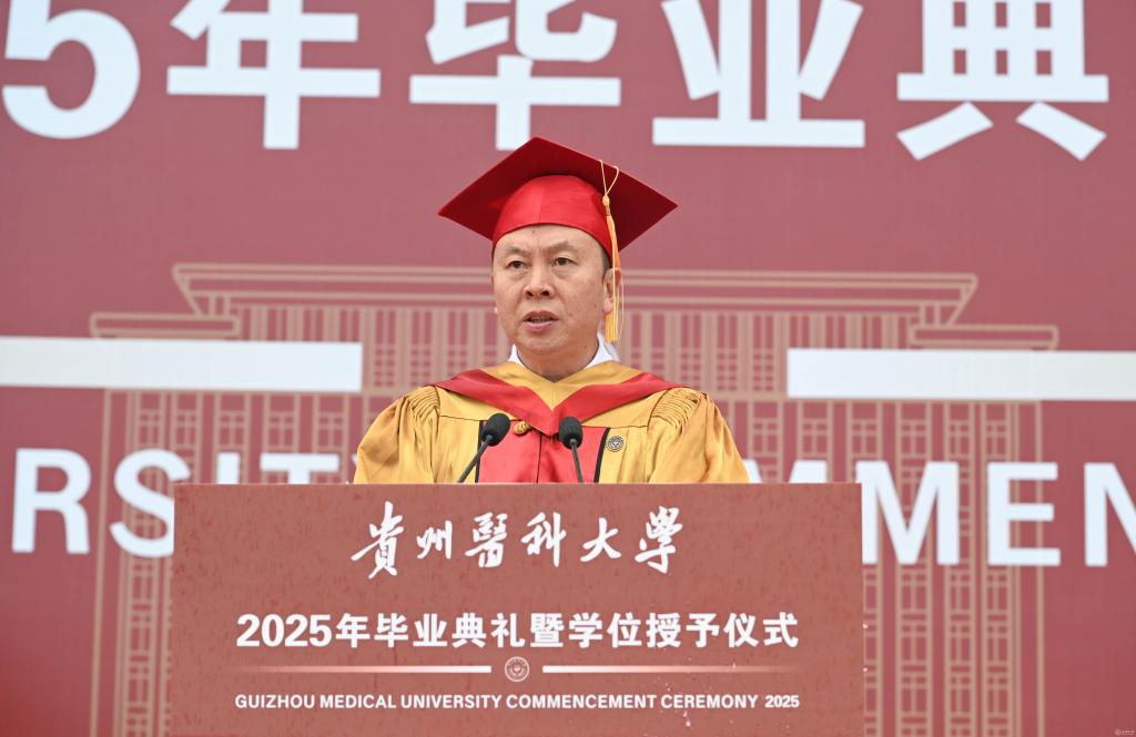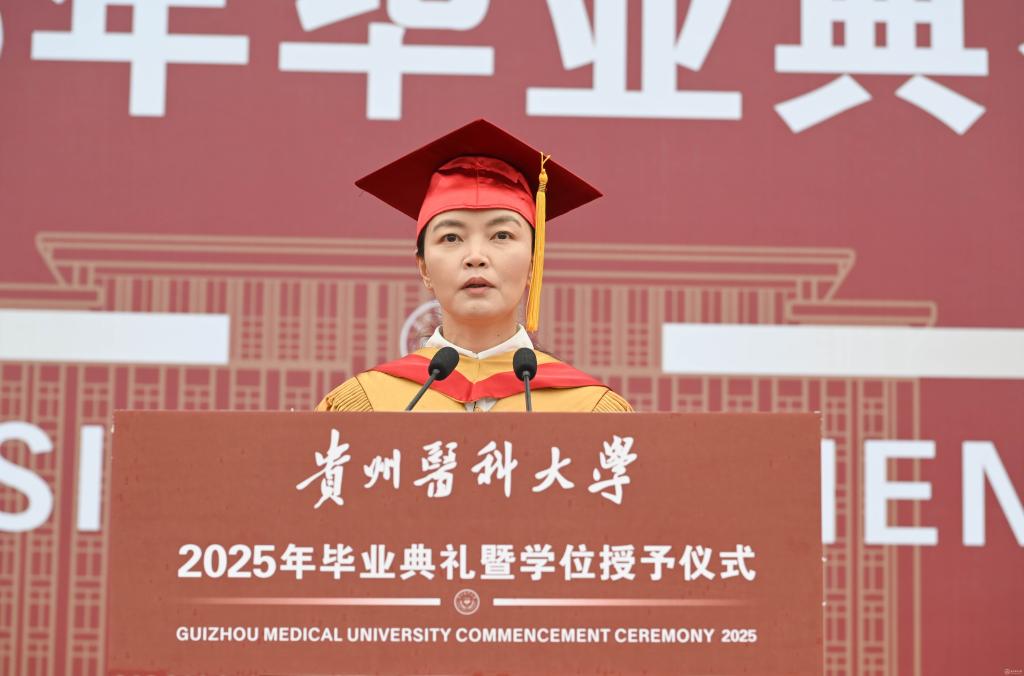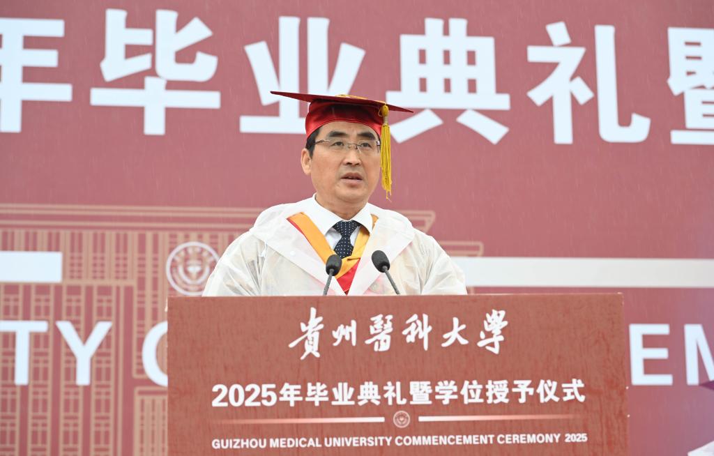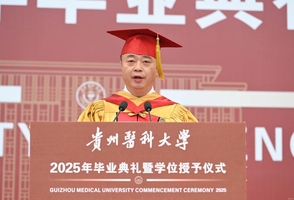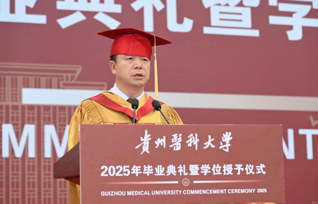 罗鹏寄语毕业生,他以“胸怀天下、虚怀若谷、勤学善思、修身立德”四点嘱托,勉励学子将个人理想融入国家发展,以仁心仁术守护人民健康。他强调,医学教育不仅要传授技艺,更要培育“健康所系,性命相托”的责任担当,希望贵医毕业生们坚守“诚於己、忠于群、敬往思来”的校训精神,做人民健康的守护者,让青春在党和人民最需要的地方绽放绚丽之花。