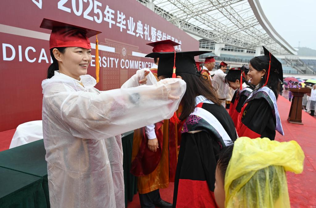 6月26日,beat3652025年毕业典礼暨学位授予仪式在云漫湖校区举行,5990名本科生、1498名硕博毕业生代表身着学位服齐聚一堂,共同见证人生重要时刻。校园内红旗飘扬,青春的歌声与誓言交织,处处洋溢着温暖与感动。校党委副书记、校长罗鹏教授,党委副书记汤磊教授、于浩教授,校党委委员、附属医院党委书记李海洋教授,校党委委员、副校长曾柱教授,附属医院院长左石教授,校党委委员、省纪委省监委派驻校纪检监察组组长杨智监察官,校党委委员、副校长洪峰教授、齐晓岚教授及学校学位评定委员会成员,各学院和相关部门领导、教师代表、辅导员以及家属代表参加。