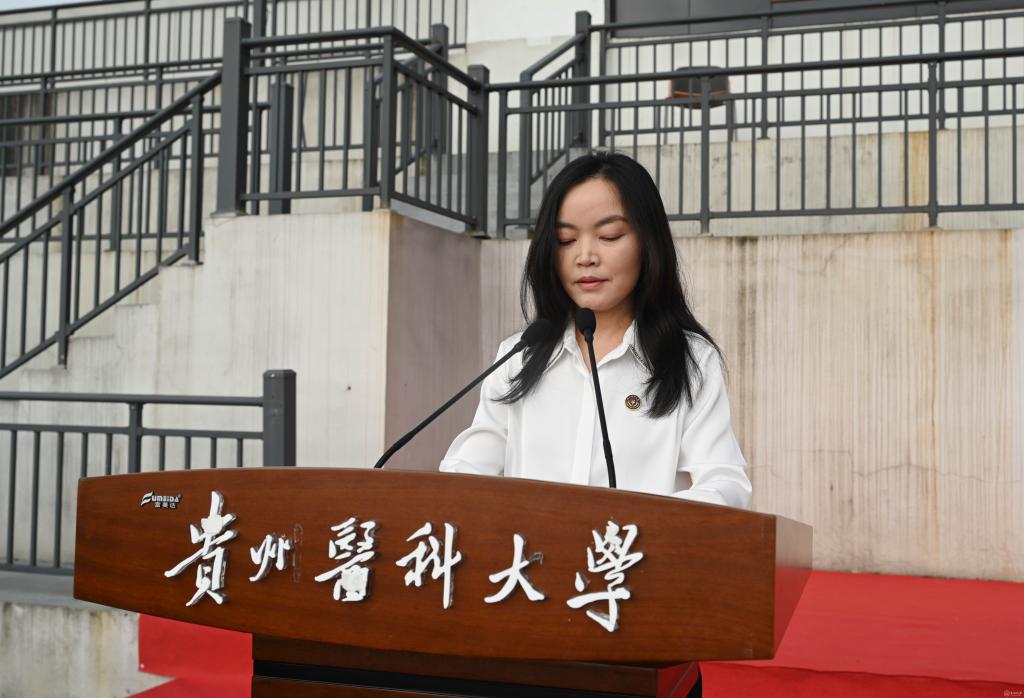 附属医院神经外科徐卡娅教授作为教师代表发言,提出”转型、目标、基石”三大关键词。鼓励新生在大学要适应自主学习模式,直面挫折挑战,力争用跨界融合的创新思维助力医学发展。