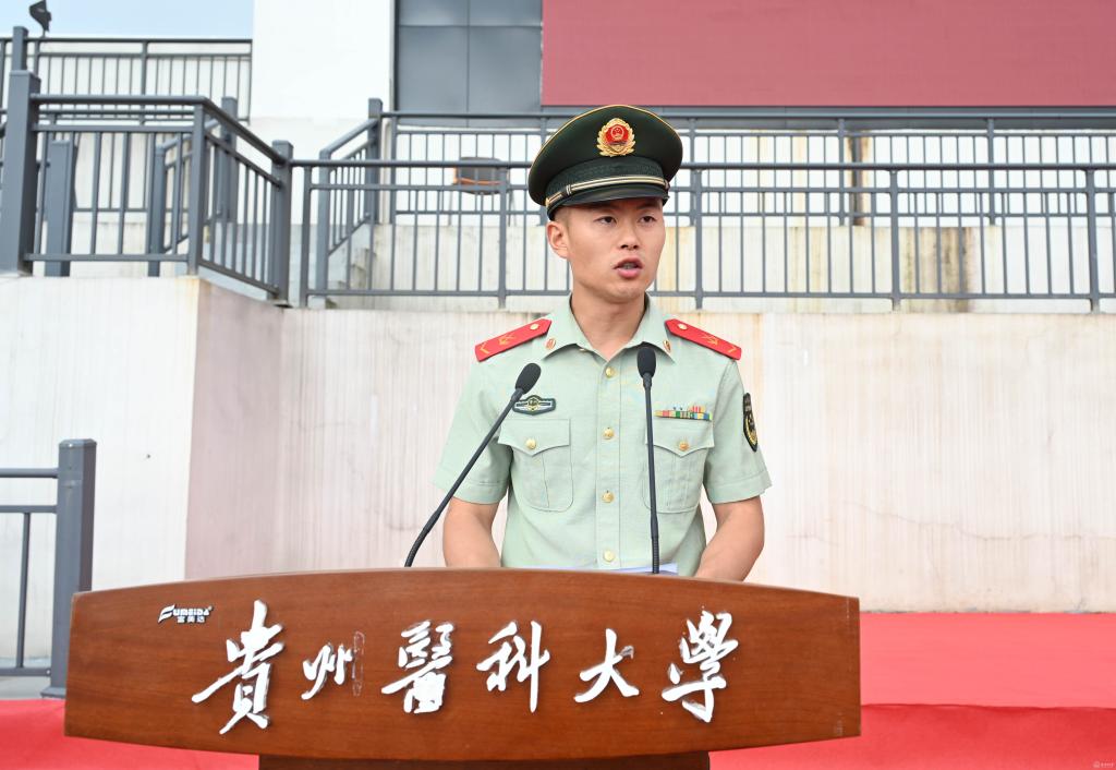 罗鹏以《激扬青春力量挺膺青春担当争做堪当民族复兴重任的时代新人》为题讲话,他回顾学校87年办学历史,强调贵医人“以医报国”的初心使命,并对新生提出期望:一是以医者仁心守护苍生,服务国家健康战略;二是以赤诚丹心许党报国,锤炼军训意志与奉献精神;三是以锐气为刃破解医学难题,勇攀科技创新高峰;四是以奋斗之姿破浪远征,践行“强国有我”誓言。