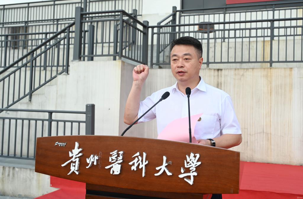 汤磊强调,同学们要心怀家国,传承使命,传承贵医“协和标准办学”“挺身担当”的精神血脉,将个人理想融入医学事业,以“敢为人先”的魄力服务民族复兴;要脚踏实地,锤炼本领,在医学科技飞速发展的时代深耕专业、跨界融合,以批判性思维应对挑战;要厚德载物,医者仁心:铭记“健康所系,性命相托”的誓言,以医德润身、以大德铸魂,践行“为祖国医药卫生事业奋斗终生”的初心。