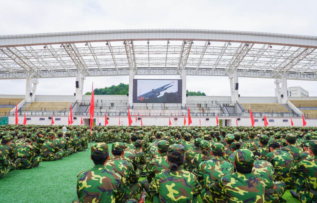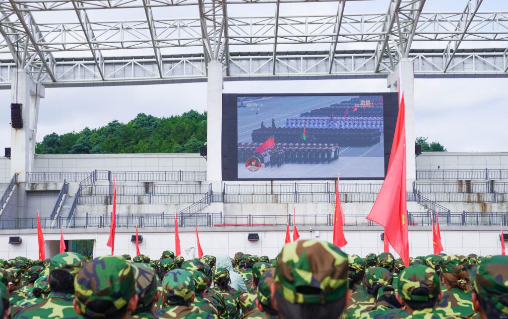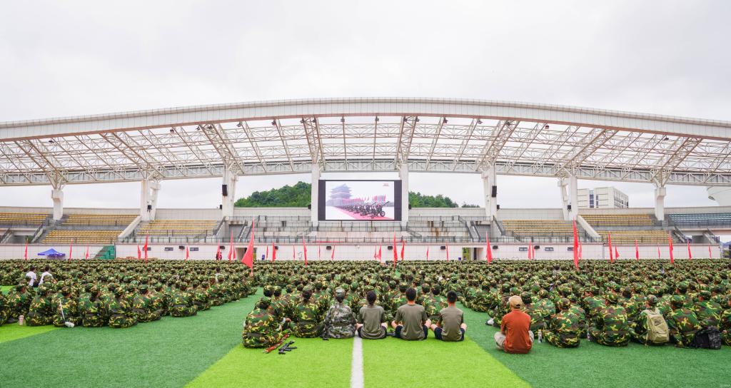 全员覆盖:从“核心队伍”到“青春力量”的同频共振。上午8时45分,主会场已座无虚席。当屏幕中传来“鸣放礼炮”的铿锵声,现场瞬间安静——所有人目光紧盯屏幕,跟随阅兵式的节奏,感受新时代强军兴军的磅礴力量。徒步方队迈着整齐的正步走过长安街时,会场内数次响起自发掌声;装备方队展示的国产尖端武器装备,更让师生们感叹“这就是中国力量”。