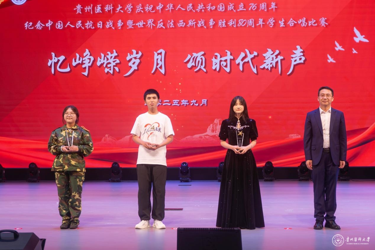 比赛现场流光溢彩,青春飞扬。各参赛队伍紧紧围绕爱国和青春主题,以歌叙史、以声言志,倾情演绎了《在太行山上》《保卫黄河》《没有共产党就没有新中国》等荡气回肠的红色经典,以及《如愿》《星辰大海》《追梦赤子心》等朝气蓬勃的青春乐章。经过一个多月的精心准备,各学院在传统合唱中创新融入深情朗诵、情景表演、舞蹈演绎、乐器伴奏等多元艺术形式,让经典旋律焕发时代新声,让青春之歌激荡奋进力量。30余首承载历史记忆与时代梦想的歌曲轮番上演,或激昂澎湃,或深情婉转,充分展现了贵医青年自信自强、团结奋斗、朝气蓬勃的精神风貌。整场演出高潮迭起,掌声如潮,热烈的气氛感染着每一位在场师生。