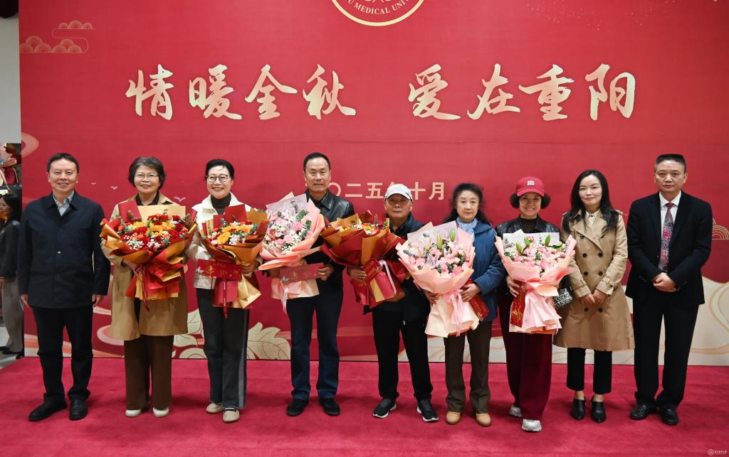 汤磊在致辞中指出,今年学校成功召开第二次党代会,明确了“建设特色鲜明、同类先进、国内一流的百年医科大学”的奋斗目标,并规划了“两步走”战略路径,学校各项事业取得了突破性进展。他表示,学校发展的每一次跨越,都凝聚着老同志的心血与智慧,离不开各位的持续支持。希望老同志能充分发挥政治优势、经验优势,为学校建设积极献计献策;学校也将持续优化服务机制,用心用情解决老同志的实际困难,让“贵医大家庭”的温暖切实可感。