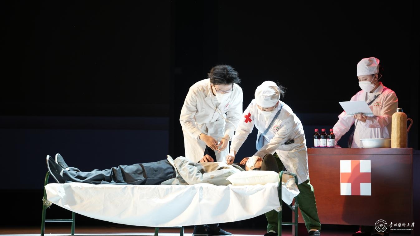 活动现场,来自全省6所大中小学的学生们通过自编自演的科普剧目,让科学家精神变得可感、可知、可学。beat365以贵州省首位遗体捐献者杨洁泉先生为原型的原创校史剧《生命的温度》,成功入选2025年“科学家故事舞台剧推广行动”剧目名单,是贵州省唯一获此殊荣的作品。此次活动中,在贵州省科学技术协会的关心支持下,经中国煤矿文工团话剧团一级演员张海老师精心指导和beat365师生反复打磨下,beat365创作并演出的剧目《薪火永燃》首次登台亮相。该剧以杨洁泉教授的一生为核心,生动展现他“行医救国、杏坛传薪、捐躯献智”的崇高事迹。