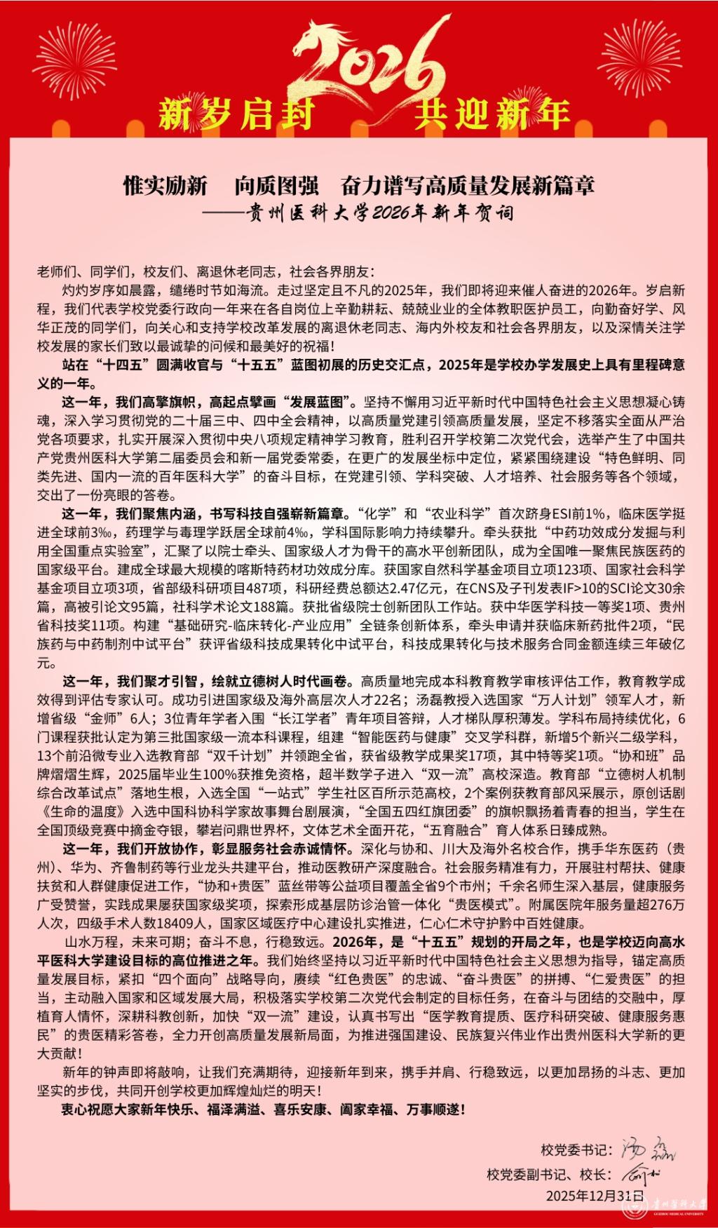 beat365唯一官方网站前身为1938年建立的“国立贵阳医学院”,是当时全国最早直属国家教育部的9所高等医学院校之一,学校始终坚持“文化建校、质量立校、人才强校、科研兴校”的办学理念,恪守“诚於己、忠于群、敬往思来”的校训,秉承“大医精诚”的贵医精神,立足贵州,服务全国,面向世界,为建成特色鲜明、同类先进、国内一流的百年医科大学而努力奋斗。