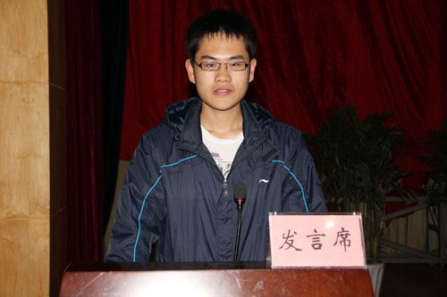 学员代表基础医学院王文朝同学作了发言,他表示一定严格遵守党校学员守则,刻苦学习理论知识,牢记医学生的誓词,秉承和发扬“诚于己,忠于群,敬往思来”的校训,并郑重地承诺将和全体学员一起,深入学习贯彻科学发展观,以最饱满的热情,刻苦学习,遵守纪律,开拓进取,进一步端正入党动机,把理论知识认真贯彻到实践中,创先争优,努力做一名思想政治素养高,文化知识学得好的优秀学员,在党课结业时向党组织交一份满意的答卷。