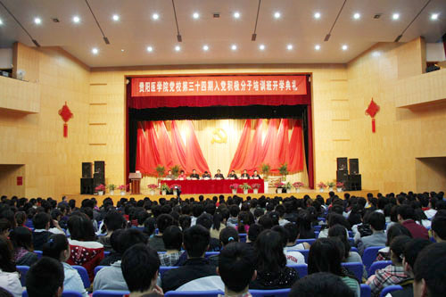 开学典礼在庄严的《国歌》声中拉开帷幕。学院党委书记、党校校长赵明仁作了讲话,他首先代表学校党委、党校对参加本期培训班的全体学员表示热烈的祝贺!赵书记指出,今年是中国共产党成立90 周年,也是实施“十二五”规划的开局之年。在全党深入学习贯彻党的十七届五中全会精神,深化和拓展创先争优活动、开展中共党史学习教育之际举办本期培训班意义重大。赵书记结合实际,对全体学员讲了两个问题,第一个问题是端正态度,正确认识入党积极分子接受培训的重要性。他从三个方面阐述了正确认识举办入党积极分子培训班的重要意义:一是举办培训班是入党积极分子熟悉和掌握党的基本知识、基本理论的需要;二是举办培训班是入党积极分子端正入党动机,提高思想政治觉悟的需要;三是举办培训班是落实党中央关于党员发展工作指示精神的需要。第二个问题是抓住关键,努力提高学习效果。如何办好这期培训班,切实提高学习效果,赵书记讲了四点意见:一是要把握学习的重点内容;二是要发扬刻苦钻研的精神;三是坚持理论联系实际的学风;四是要加强组织纪律性。最后赵书记希望全体学员以此次党校学习为契机,解放思想、求真务实,改革创新、奋力拼搏,不断提高大家的综合素质,发挥大家的力量和智慧,紧密结合贵阳医学院实际和全院工作大局,推动学院科学发展、和谐发展。为把学校办成具有明显特色、西南一流、全国有一定影响的省属重点医科大学,为加快贵州经济社会又好又快、更好更快发展而努力奋斗。
