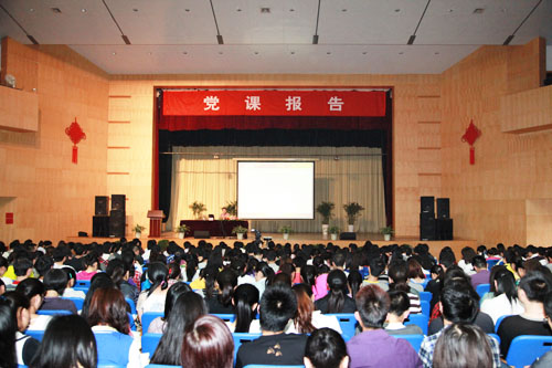为庆祝中国共产党成立90周年,深入开展创先争优活动,按照学校党委的部署和安排,全校各级党组织积极开展上党课、讲传统、增党性活动。4月28日学校党校在大礼堂举行了党课报告会,学校党委书记、党校校长赵明仁教授作了题为“深入贯彻落实科学发展观”的党课报告,学校党委各职能部门负责人,各基层党委、党总支(直属党支部)书记、分管副书记以及党校第三十四期入党积极分子培训班全体学员和师生代表1200余人聆听报告。报告会由学校党委组织部部长、党校副校长陈祖云主持。