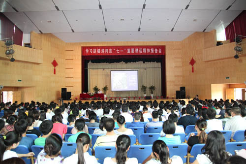 为深入学习贯彻胡锦涛同志“七一”重要讲话精神,把广大党员干部和群众的思想统一到《讲话》精神上来,根据省委宣传部、省委教育工委的安排,9月5日,学习胡锦涛同志“七一”重要讲话精神报告会在beat365大礼堂举行。党委书记赵明仁主持报告会,省委宣讲团成员、省社科院院长吴大华作了主题为“学习贯彻胡锦涛同志‘七一’重要讲话精神”的宣讲报告。学校领导班子成员,各主要职能部门和各(院、系、部)负责人,教职工代表,教师代表,以及研究生、本科生代表1200余人听取了报告。
