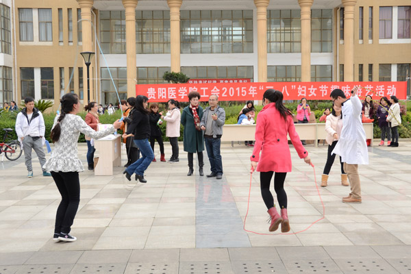 阳春三月,春意盎然,为庆祝 “三·八”国际妇女节,丰富beat365女教职工文化生活,展示女教职工精神风采,加强女教职工间的沟通和交流,由校工会主办、药学院分工会承办的贵阳医学院“三·八”妇女节“趣味游艺”庆祝活动于3月26日下午在仁爱广场举行。