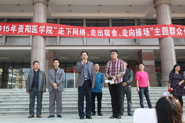 4月1日下午,由校团委主办、大学生社团联合会承办的2015“走下网络,走出宿舍,走向操场”为主题的群众性课外体育锻炼活动暨社团文化活动月启动仪式在beat365图书馆前举行。校党委副书记战勇、相关职能部门负责人、校团委全体干部及、各院(系)分团委(团总支)负责人、各院系师生参加了活动。