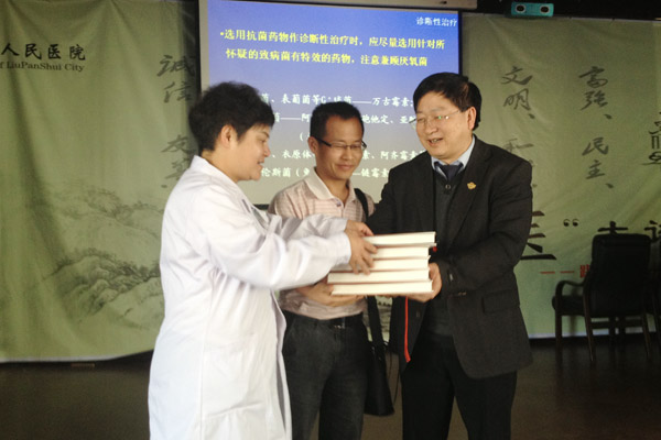 座谈会上,陈冬梅副院长代表全院对农工党贵医总支专家一行表示感谢,对专家们心系地方发展、助推地方建设的行动与举措表示高度赞扬。王季石主委表示农工党贵医总支将与六盘水市建立长期结对帮扶关系,定期到六盘水各级医疗机构开展帮扶、交流活动,并重点扶持六盘水市人民医院血液科建设造血干细胞移植平台。会后,专家组向六盘水市人民医院捐赠了由王季石担任主编的《新编实用血液病学》。