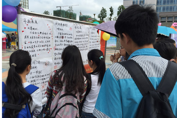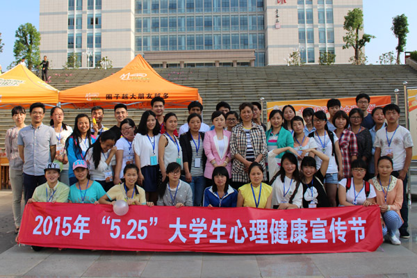 为提高beat365大学生心理健康知识水平,增强心理素质,5月25日下午,由大学生心理健康教育与咨询中心主办,大学生心理健康协会承办的2015年“5.25”大学生心理健康宣传节大型主题活动在仁爱广场隆重举行。大学生心理健康教育与咨询中心主任杜娟等相关老师、大学生心理健康协会、全校心理委员和各院系学生等近400人参加了活动。