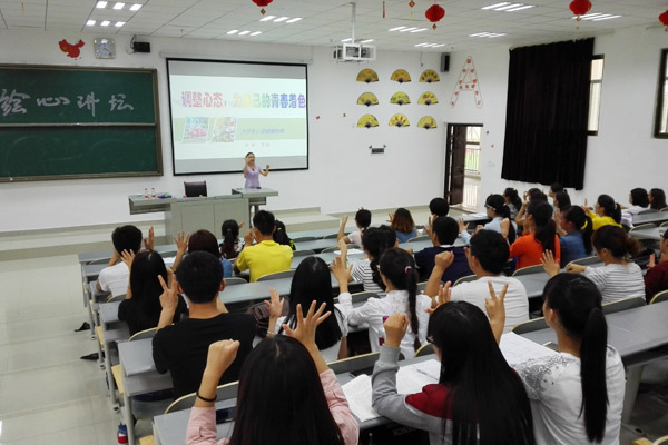 随后,王凤老师在4101教室为各院系学生代表作了题为《调整心态,为自己青春着色》的讲座。