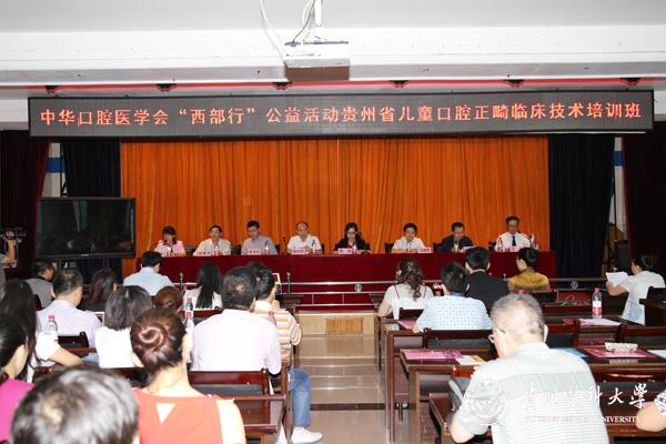 7月4日至5日,由中华口腔医学会主办、beat365第二附属医院和贵州省口腔医学会正畸专业委员会承办的中国口腔医学会“西部行”公益活动贵州省儿童口腔畸形临床技术培训班在beat365第二附属医院一号会议室举行。中国口腔医学会副秘书长陈铭教授,南京医科大学口腔医院正畸科副主任张卫兵副教授、主任医师马俊青博士、主任医师赵春洋副教授、主任医师王震东教授,贵州省口腔医学会、beat365附属口腔医院副院长王永教授,beat365第二附属医院副院长陆方阳教授等领导和专家出席开幕式,来自全省各州、市、地及县乡医院相关专业医护人员共200余人参加了此次培训班。