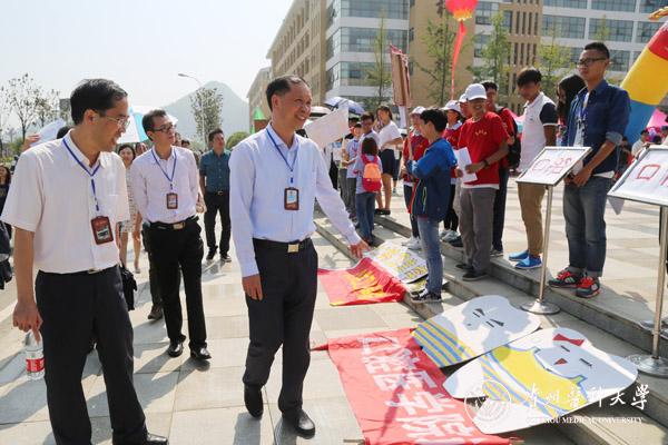 校党委书记林昌虎、校党委副书记战勇、副校长冉江舟等校领导在相关部门负责人陪同下来到迎新现场,对现场工作人员的辛勤工作表示慰问和感谢,与新同学及家长亲切交谈。林昌虎对迎新氛围、报到程序、报到路线等进行了仔细察看,走访了各院系和新生入学手续办理现场,深入学生宿舍和食堂,亲切问候新同学,鼓励新同学尽快适应大学新生活,不辜负家长和学校的期望。在“一站式”学生事务服务中心,林昌虎详细询问了学生的入学安排和报道情况。