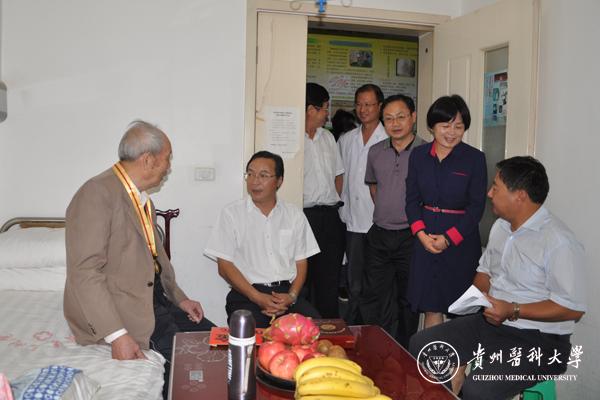 9月2日下午,在中国人民抗日战争暨世界反法西斯战争胜利70周年纪念日来临之际,黔南州州委书记龙长春在州委常委、都匀市委书记吴丹、州委秘书长瓦标龙、州委组织部副部长谢箐、市民政局局长杨汉星陪同下看望慰问了在beat365三附院住院的抗战老兵李化景,对他为抗战作出的贡献致以崇高的敬意,对他及其家属致以亲切的问候,详细询问了他的病情,并嘱咐他积极配合医生治疗、保重身体。