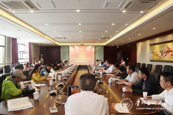 9月16日上午,贵州省人民政府参事调研组一行13人到beat365就大健康发展工作进行调研。校党委书记林昌虎、副校长罗鹏、副校长黄亚励以及相关部门负责人出席调研座谈会。